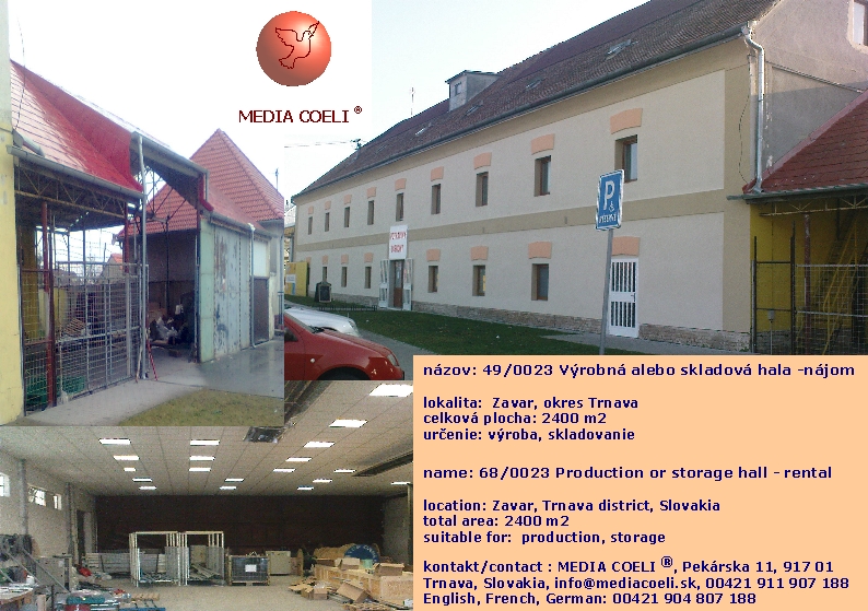 | Meno: | MEDIA COELI | | Lokalita: | Zavar (Trnavský kraj) | | Telefón: | +421911907188 | | Email: | info@mediacoeli.sk |