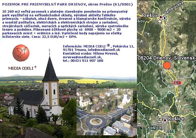 Pozemok pre priemyseln park Drienov, okres Preov (61/0001)
