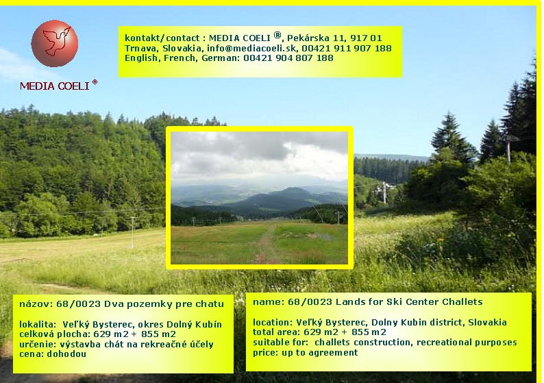 | Meno: | MEDIA COELI | | Lokalita: | Ve?k Bysterec (Žilinský kraj) | | Telefón: | +421911907188 | | Email: | info@mediacoeli.sk |