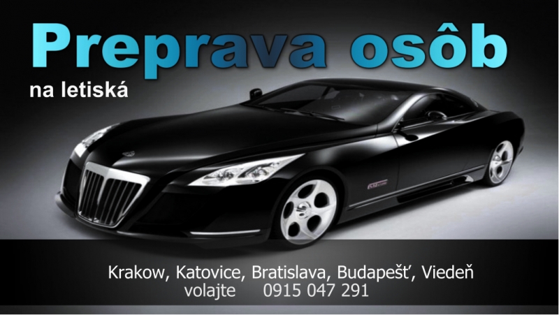 | Meno: | Preprava osb | | Lokalita: | Poprad (Prešovský kraj) | | Telefón: | 0915047921 | | Email: | preprava.osob.letisko@gmail.com |